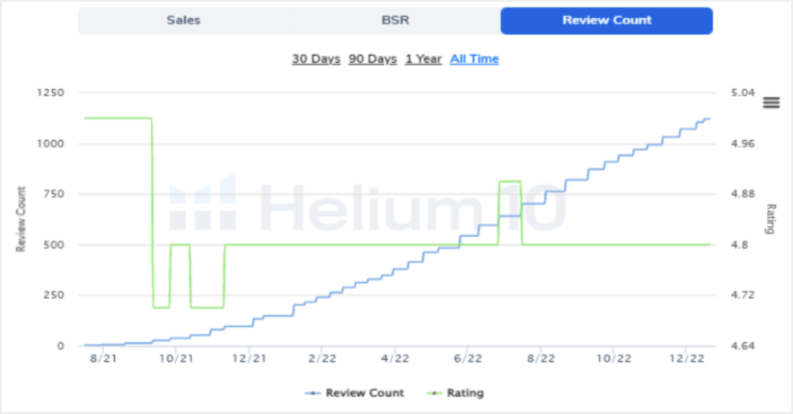 (4.5–5 stars). Since then, the hero product has maintained stable review growth — a key factor in both conversion and organic ranking.